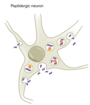 When I first started learning about neuropeptides, it broke my mental model of how neurons work. Like neurotransmitters, neuropeptides come in pairs: ligands (encoded as neuropeptide precursors in the genome, NPPs) and receptors (G-protein coupled receptors, or GPCRs). However: